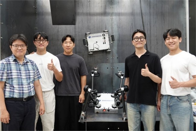 카이스트 휴보랩의 박해원 교수 연구팀과 디든로보틱스 김준하 대표(오른쪽에서 두 번째) / 사진. 디든로보틱스